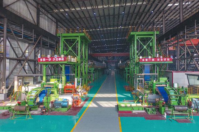150m/min彩涂高端自動化生產(chǎn)線四條,涂輥壓力檢測,適時調(diào)整、底涂和面涂兩輥式涂頭可選用兩涂兩烘工藝;底漆和面漆濕膜厚度在線檢測、面涂采用“U”型雙涂頭機(jī);涂輥配置在線刮刀、涂料配置油漆恒溫系統(tǒng)。配置保護(hù)膜覆膜機(jī)、配置在線頻閃儀檢查臺;出口段自動分卷、自動穿帶、自動卷取和自動卸卷功能;卷取機(jī)配置EPC系統(tǒng),實(shí)現(xiàn)成品鋼卷的齊邊卷取;卷取機(jī)配置助卷器和無縫卷筒,防止成品卷內(nèi)圈壓痕產(chǎn)生。